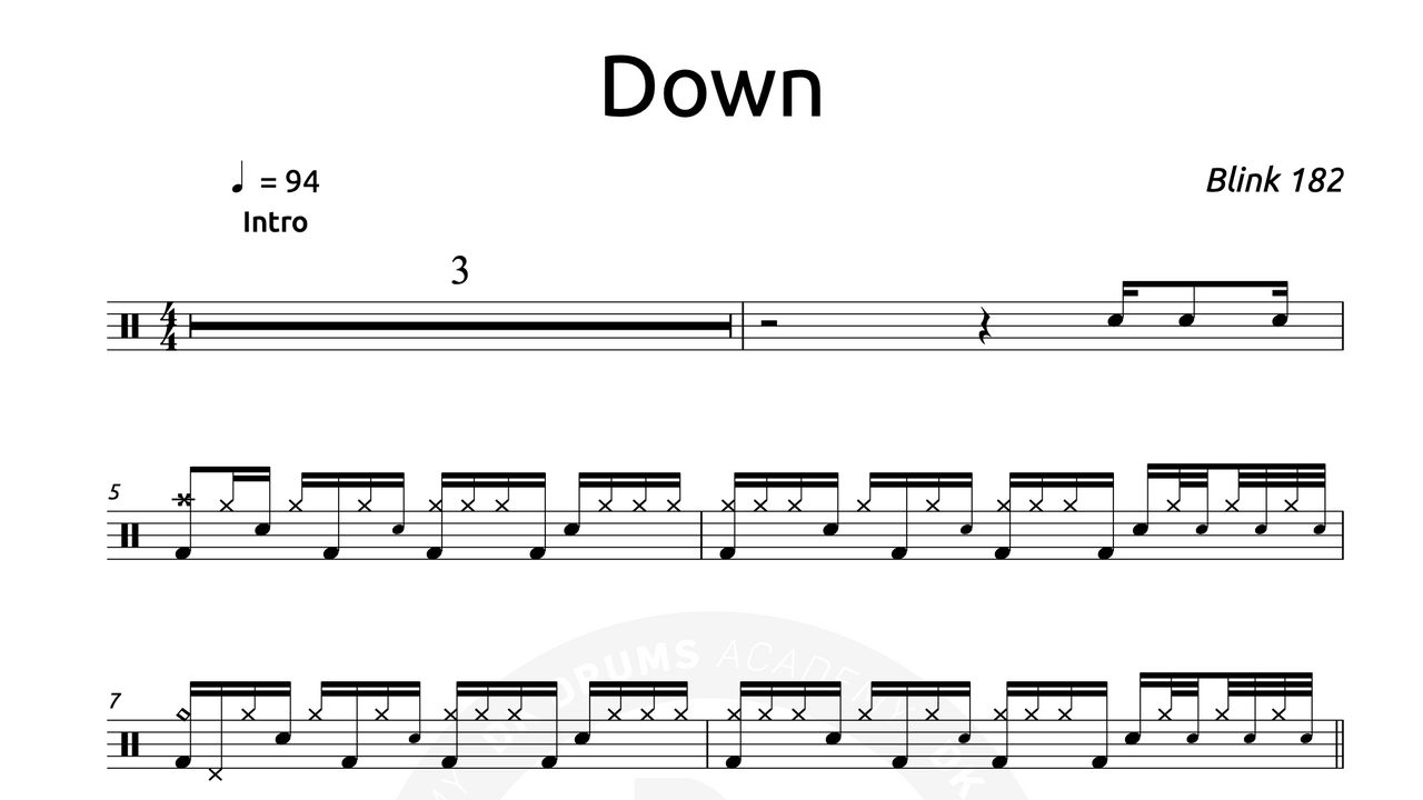 The full drum sheet music for “Down” by Blink 182 from the album Blink 182 - Self Titled (2003).