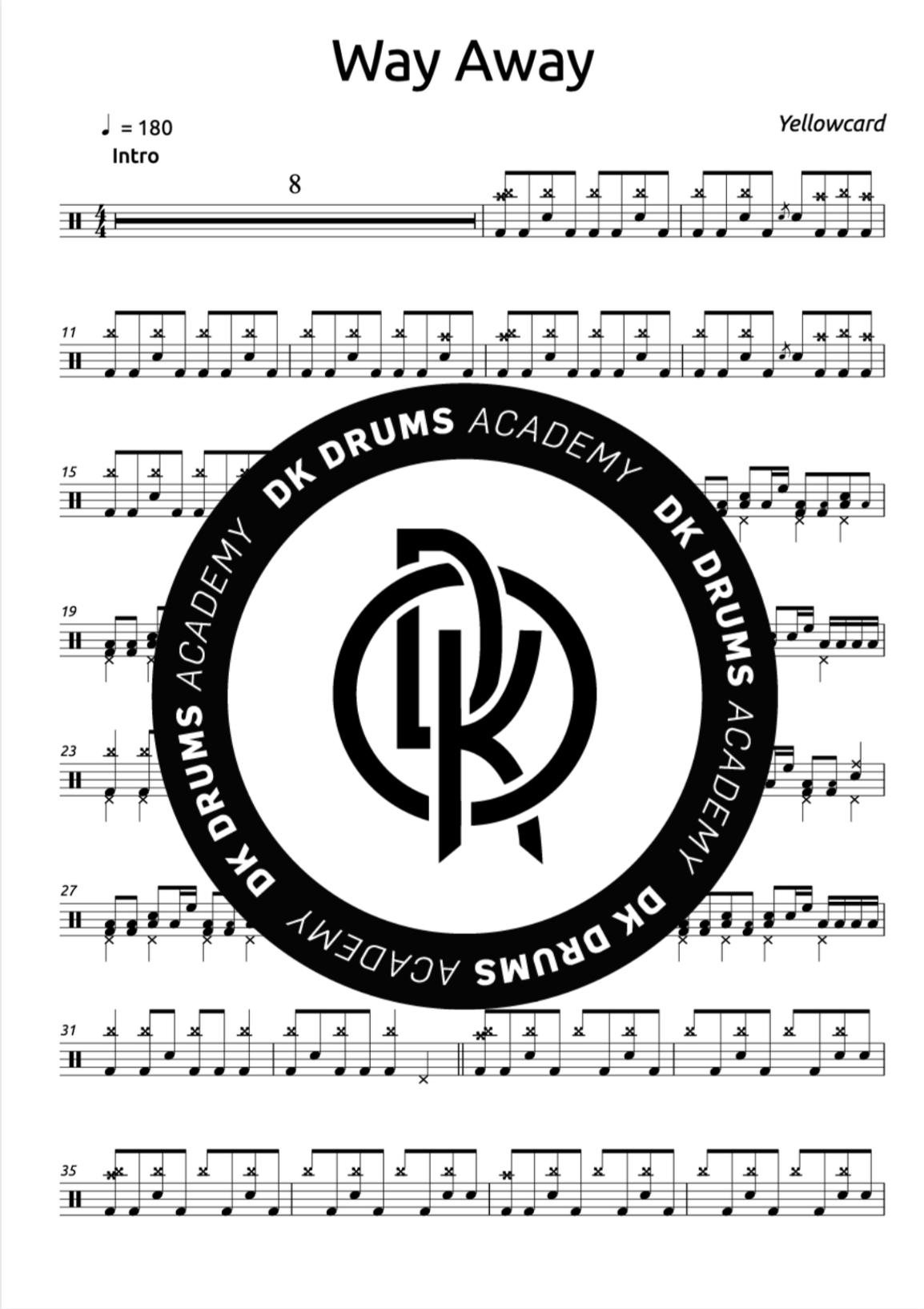 The full drum sheet music for “Way Away" by Yellowcard from the album Ocean Avenue (2003).
