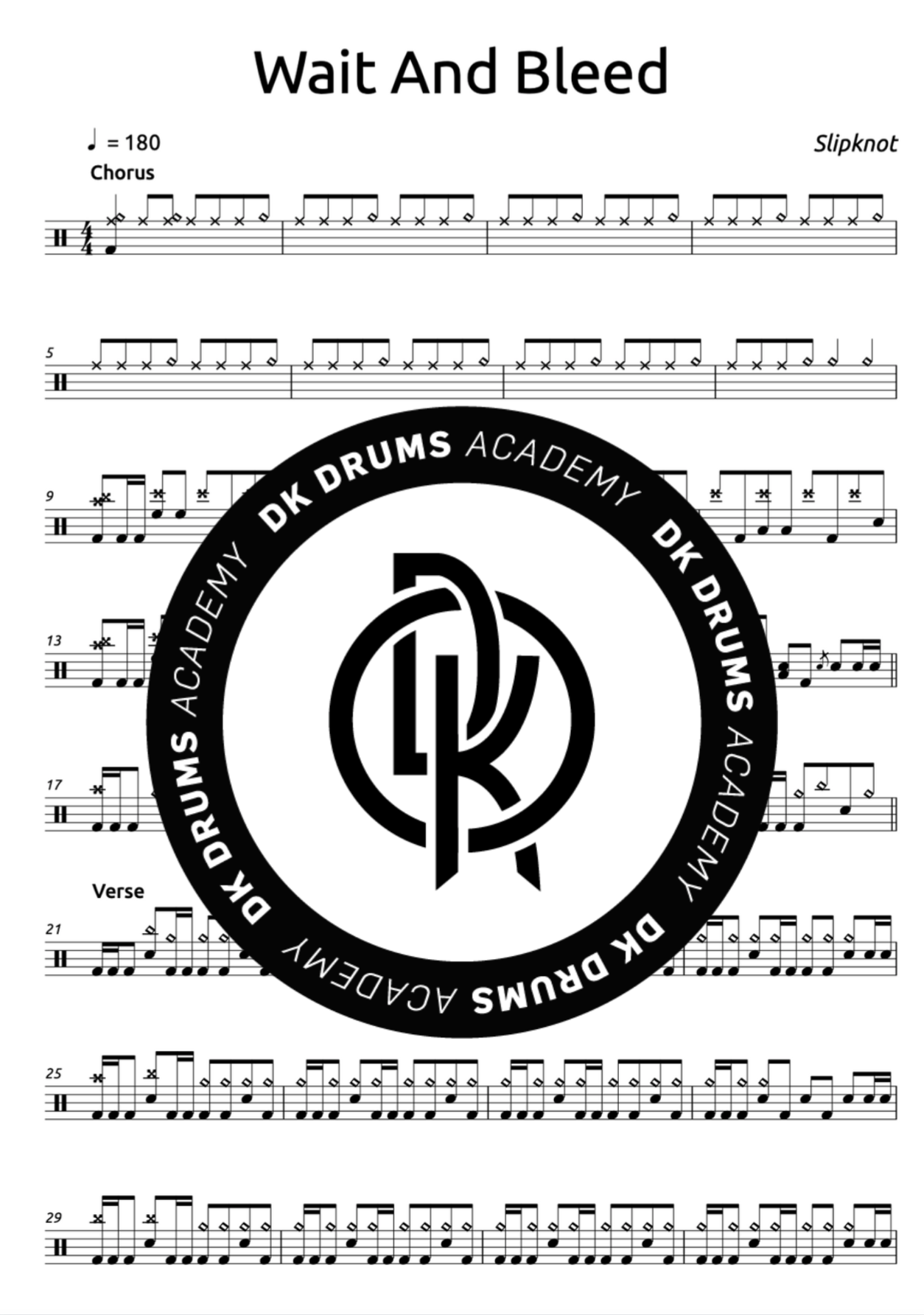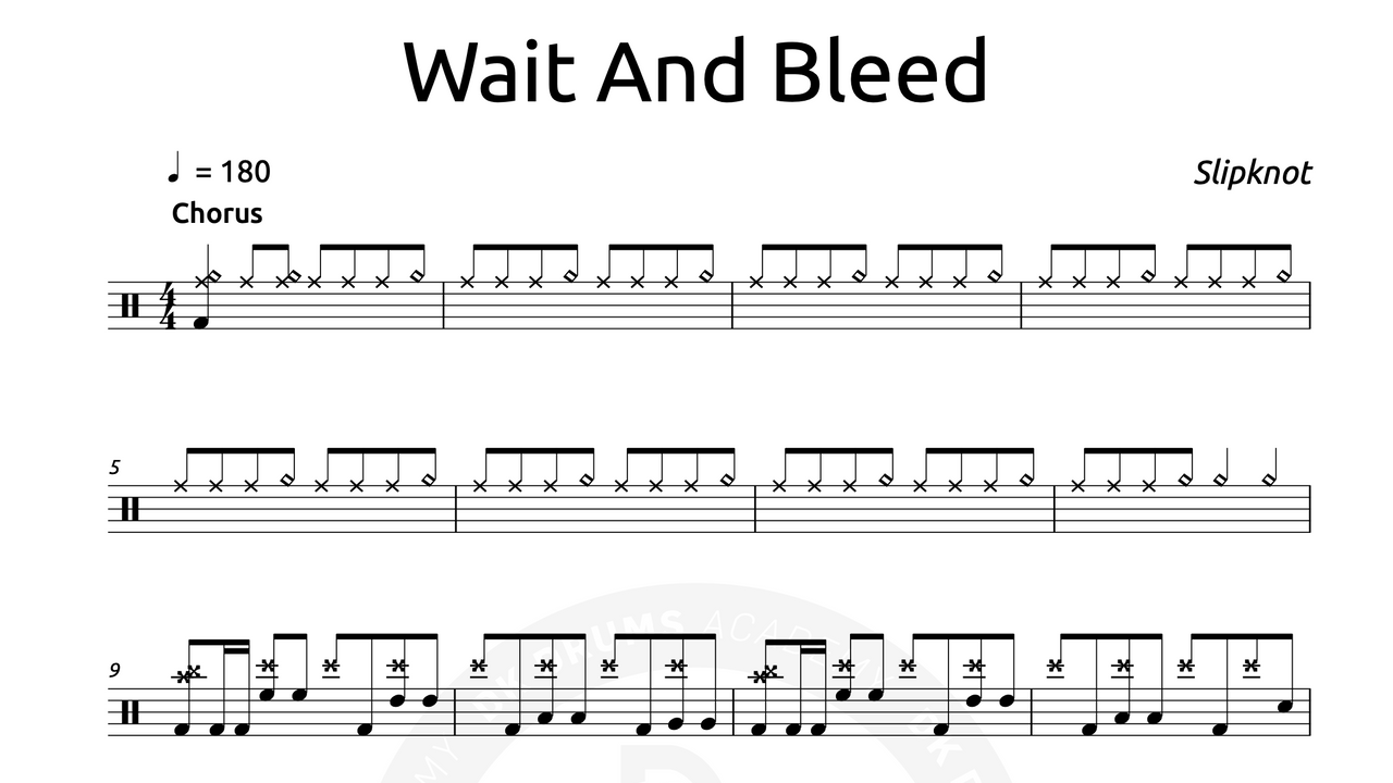 The full drum sheet music for “Wait and Bleed" by Slipknot from the album Slipknot (1999)